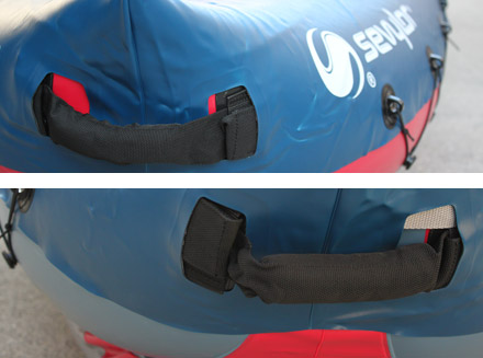 La kayak gonfiabile SEVYLOR Tahiti Plus è dotata di una maniglia anteriore e una posteriore per il sollevamento e il trasporto.