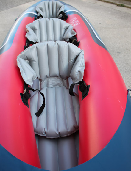 I 3 sedili del kayak gonfiabile Tahiti Plus sono comodi per brevi viaggi. Gonfiabili e regolabili, si adattano alla forma del corpo e dei glutei e offrono un buon sostegno alla schiena.