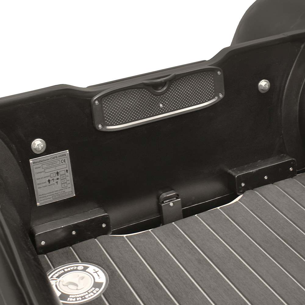 Il gommone Cape Horn Cloud Grey ha un cruscotto posteriore di alta qualità, progettato appositamente per resistere alle sollecitazioni meccaniche legate all'uso di motori, sia termici che elettrici. La sua struttura rinforzata offre un'eccellente solidità, in grado di assorbire gli urti.