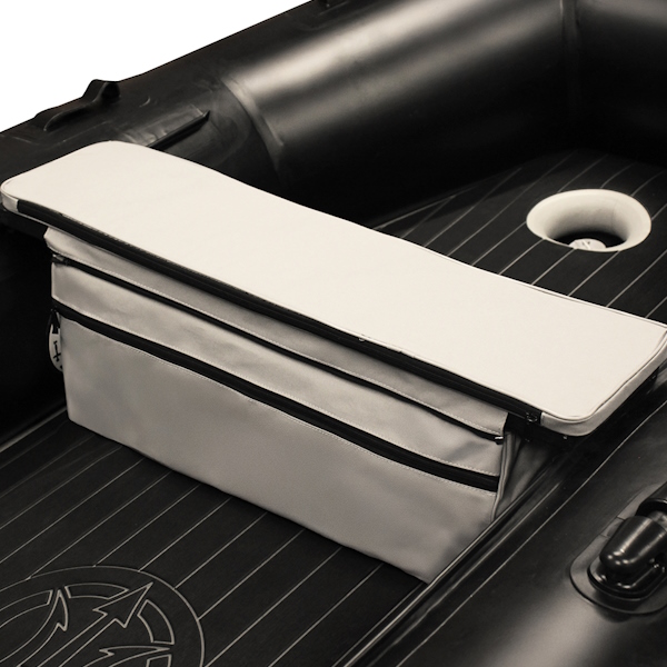 Per migliorare ancora di più il comfort, la panca ha un'imbottitura in schiuma che rimane al suo posto grazie alle cinghie di fissaggio. Queste stesse cinghie permettono di tenere la borsa ben fissata sotto la panca durante la navigazione, evitando che si muova o si rovini.