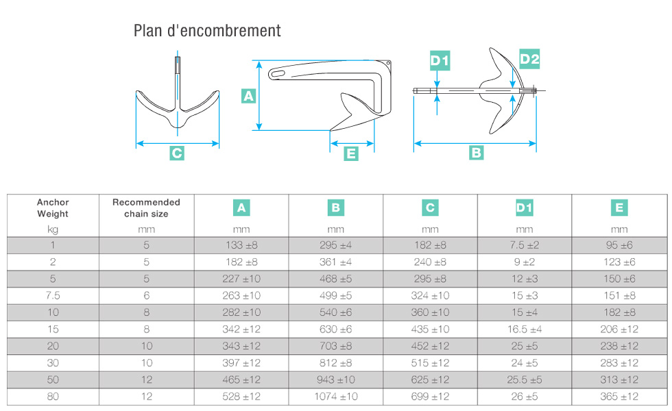 Prodotto in FranciaIspirata alle ancore barche utilizzate sulle piattaforme di perforazione del Mare del Nord, l'ancora Claw è fusa in un unico pezzo in acciaio ad alta resistenza. Afferra facilmente il fondo e può essere riposto sul rullo di prua della maggior parte delle barche.