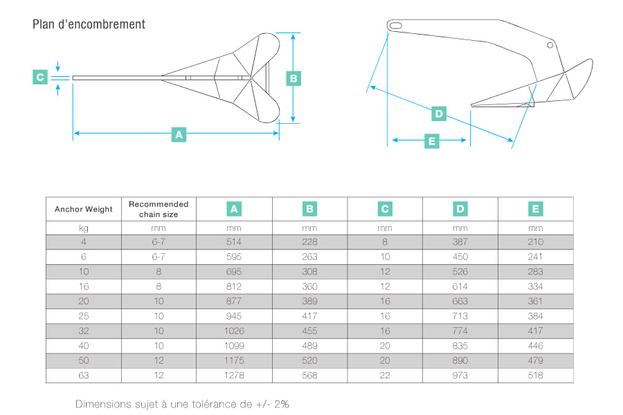 Prodotto in FranciaCostruito in acciaio ad alto tenore di manganese, l'ancora Delta offre la massima resistenza. Il suo profilo unico e il coltro zavorrato lo rendono facile da sganciare. Il baricentro molto basso e la particolare geometria garantiscono una presa immediata.