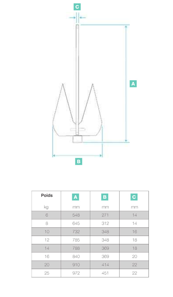 Prodotto in FranciaAncora piatta in acciaio zincato. Molto resistente