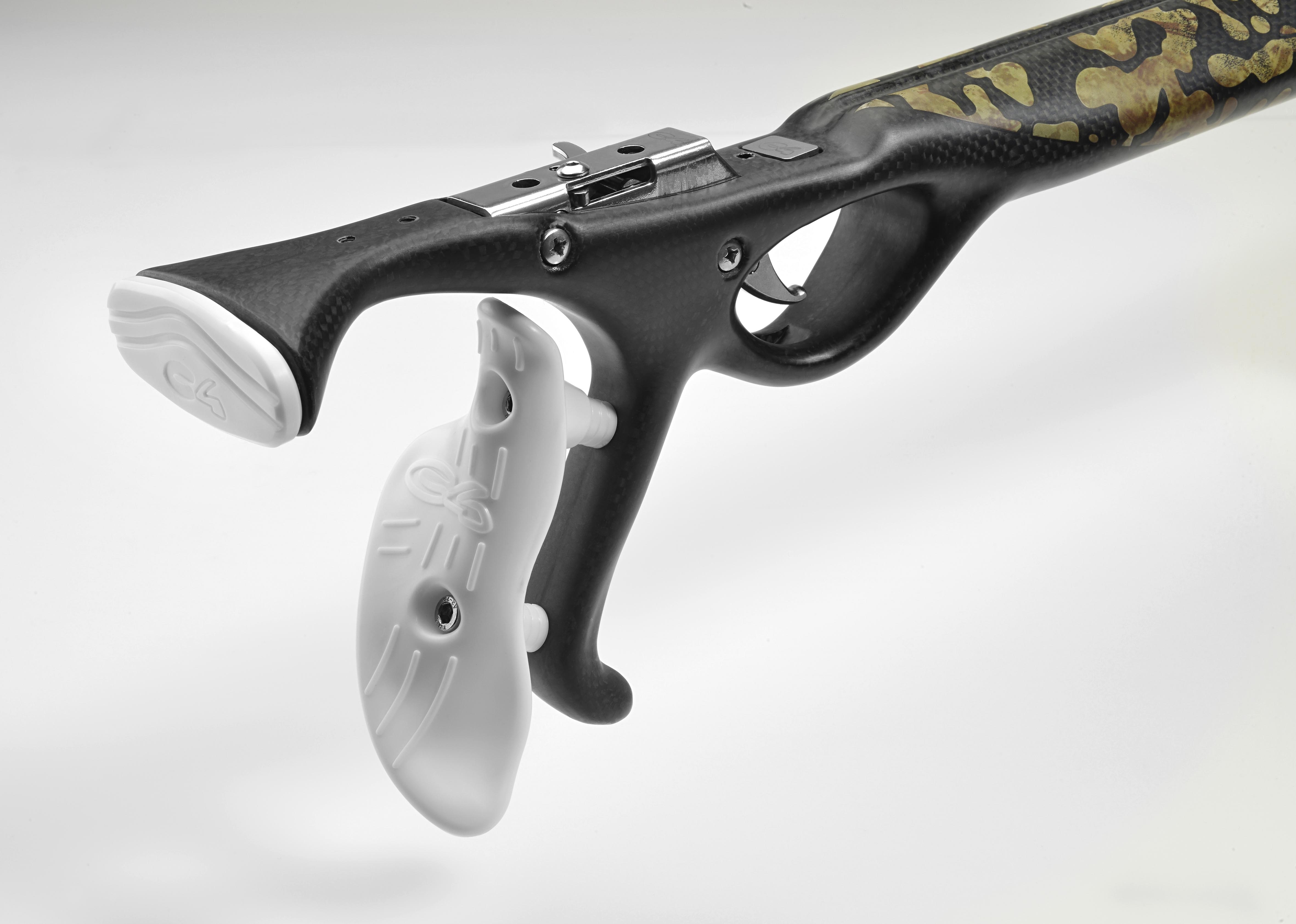 La versione Camo Ocean del Gladius - Fucile subacqueo carbonio 100% carbonio monoscocca - Fusto osso di seppia - Meccanismo 100% acciaio inossidabile C4 - Asta acciaio inossidabile - Doppio elastico diametro Ø 16 mm