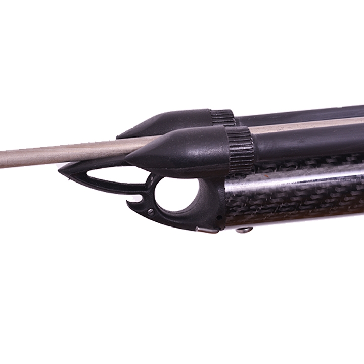 Questo fucile subacqueo è stato progettato con grande intelligenza. È dotato di uno sgancio del filo posizionato strategicamente nella parte superiore di impugnatura per sganciare rapidamente il filo di sicurezza. Il fusto in carbonio di 28 mm di diametro è leggero e robusto, il che lo rende eccezionalmente facile da maneggiare sott'acqua. Il supporto tallone di caricamento e mulinello rimovibile ne aumentano la versatilità.