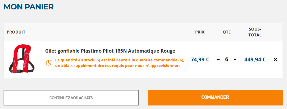 Nella pagina del prodotto, basta cliccare su + fino a raggiungere la quantità che vuoi, oppure inserire direttamente la quantità prima di cliccare su Aggiungi al carrello. Se la quantità richiesta supera le nostre scorte disponibili, nel carrello apparirà automaticamente un messaggio per avvisarti.