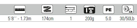Lunghezza 174cm - Potenza 200gr - Filo singolo - Blank carbonio alto modulo 40 Tn