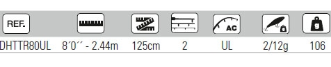 Lunghezza 244 cm - Potenza 2/12 gr - Innesti 2 sezioni - Blank carbonio