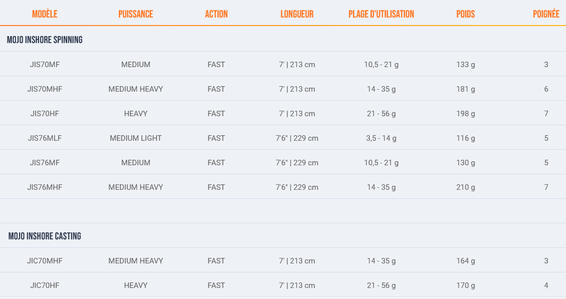 La serie Mojo Inshore ti offre le stesse qualità che hanno fatto il successo della serie Freshwater, combinate con un trattamento che ti permette di godere della tua passione nell'ambiente marino.