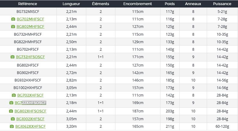| 1062XXHFSCF | Lunghezza in cm 320 Dimensioni in cm 165 Potenza in g 60-120 Peso in g 211 |