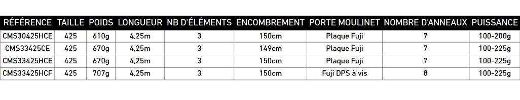Lunghezza: 425 cm • Potenza da 100 a 225 gr • Innesti: 3 fili • Cima Blank carbonio alto modulo SVF Super High Volume Fiber Super dotata di tecnologia x45
