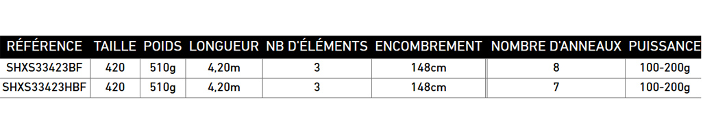 Lunghezza: 420 cm • Potenza da 100 a 200 gr • Innesti: 3 fili • Blank carbonio