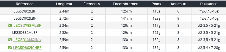 | 862MLBF | Lunghezza in cm 259 Dimensioni in cm 133 Potenza in g 5-21 Peso in g 132 |