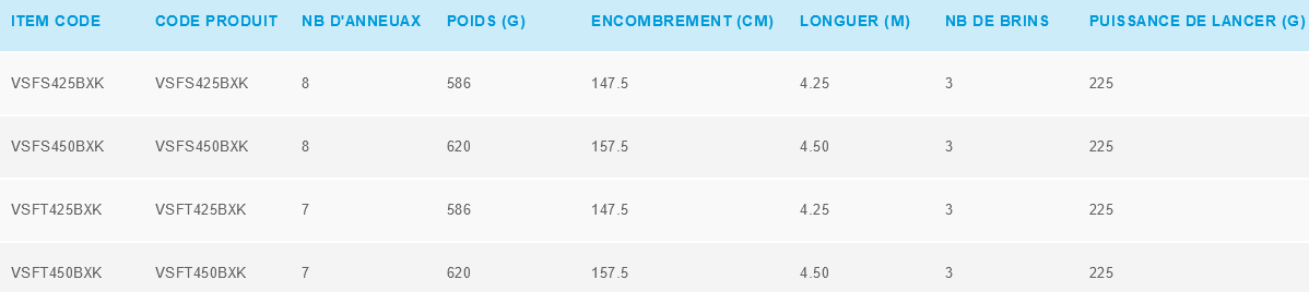 Lunghezza 425 a 450 cm - Potenza 100 a 225 gr - Innesti 3 sezioni - Blank carbonio XT40