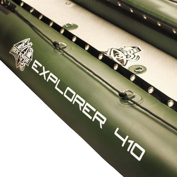 Il fondo del Rockside Explorer 410 è fatto in Dropstitch ad alta pressione, una tecnologia che permette di avere una superficie rigida e piatta, simile alle sensazioni di uno scafo rigido.