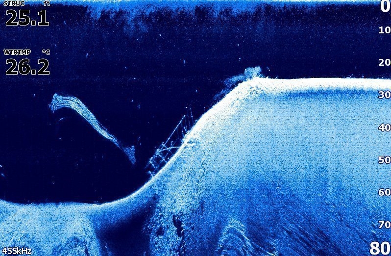 Permette di vedere i pesci più facilmente su DownScan views Imaging™, combinando gli obiettivi forniti dall'Ecoscandaglio CHIRP con viste di alta qualità e ad alta risoluzione della struttura del fondo e dei pesci esca. FishReveal elimina la necessità di visualizzare i dati Ecoscandaglio CHIRP e DownScan Imaging su uno schermo diviso in due finestre.