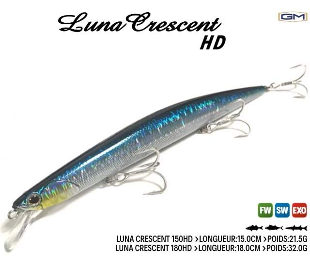 Appositamente progettato per le acque europee, il GOLDEN MEAN LUNA CRESCENT è un grande jerkbait affusolato, lungo 18 cm.