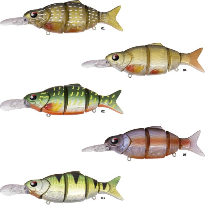 Le ZOMBIE JOINT sono esche con luccio, swim bait articolate in immersione che si evolvono tra 1 m e 1,50 m sotto la superficie.