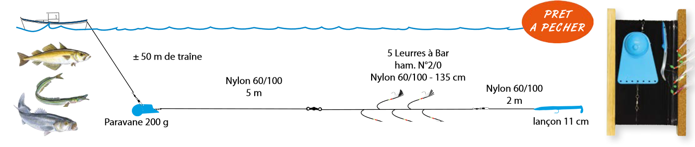 Filo da traina con paravane da 200 gr e mitragliatrice.