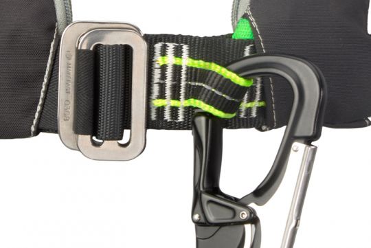 I giubbotti Plastimo Pilot 165 dotati di imbracatura hanno un sistema di chiusura con fibbia in acciaio inossidabile. Meno facile da usare rispetto alla chiusura a pulsante, permette di far passare carichi pesanti consentendo di reggere oltre 300 kg di carico.