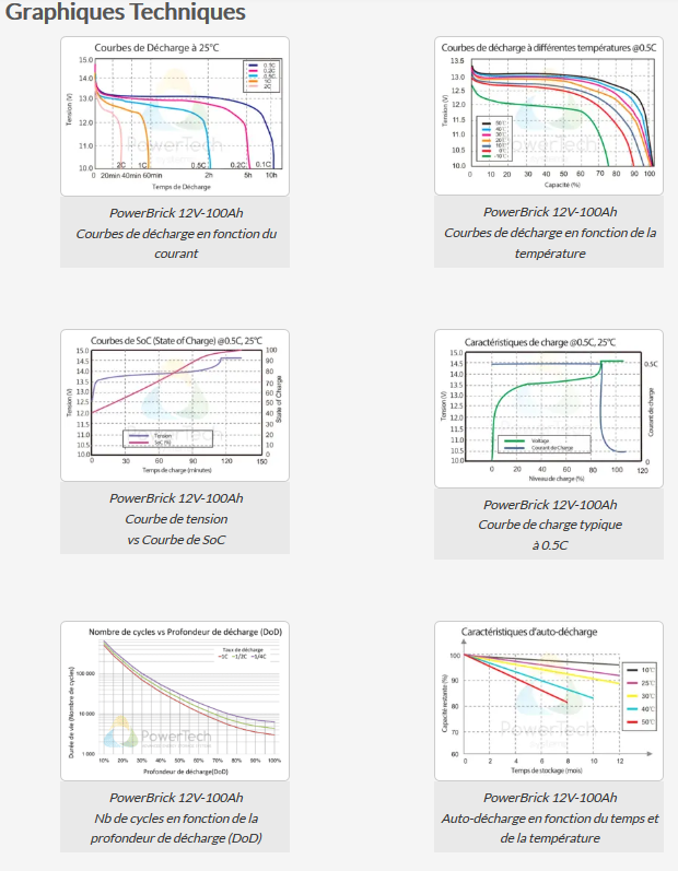 La batteria al litio PowerBrick + 12V-100Ah ha una tensione nominale di 12,8V. Può essere facilmente assemblato in serie (fino a 4 batterie in serie) e in parallelo (fino a 10 batterie).