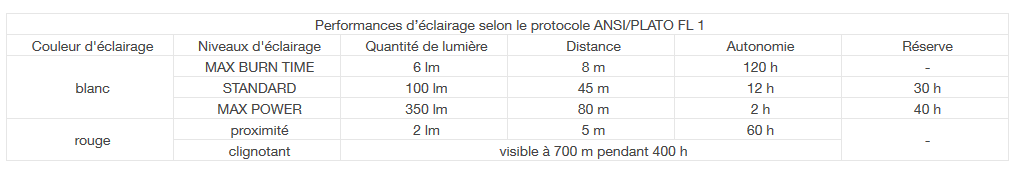 Potenza : 350 lumen (ANSI/PLATO FL 1)
