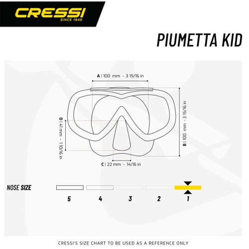 Prodotto in ItaliaLa piumetta non è solo una versione ridimensionata di una maschera per adulti, poiché ne esiste già una versione junior chiamata ondina, ma le dimensioni sono state tutte ricalcolate per adattarsi al meglio alla fisionomia delle persone più piccole.