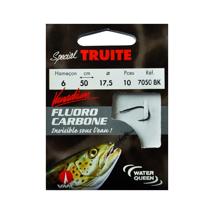 Prodotto in FranciaFluorocarbon speciale forgiato per trote con paletta 7050 BK 50 cm Ami da pesca N°8 su Nylon fluorocarbon 20/100