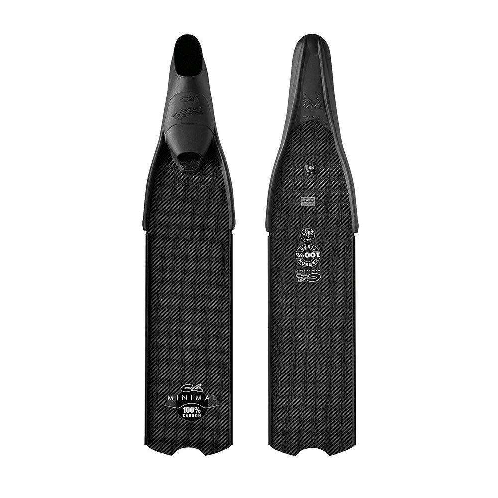 - Le pale MINIMAL in 100% fibra di carbonio T300 TW si inserisce nelle scarpette fino al tallone per consentire un'eccellente trasmissione dell'energia natatoria
