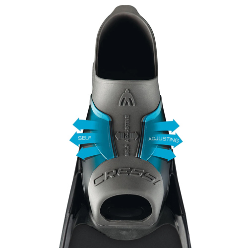 • Pala per pinne mescola estremamente flessibile e leggera realizzata con tecnopolimeri elastomerici sviluppati da Cressi con una spessore differenziazione