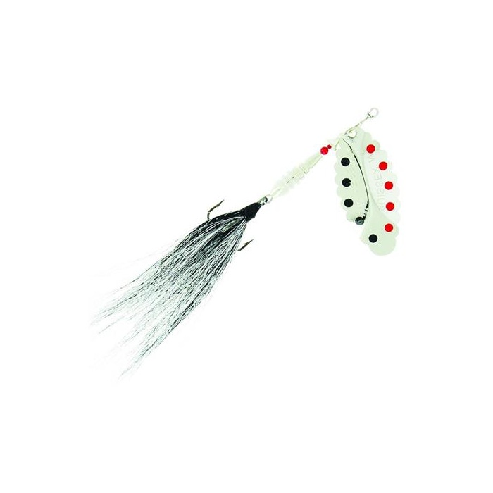 Prodotto in FranciaIl cucchiaio XL Bucktail è composto da una lama N°5 a tre lati sagomata per l'inseguimento di grandi esemplari. Emette forti vibrazioni nell'acqua per permettere una massima localizzazione con il pesce. La sua asta di filo d'acciaio con un diametro di 1,00 mm la rende molto forte sui predatori più voraci. È dotato di un amo da pesca triplo Mustad (3551-NP/BN) rinomato per la sua nitidezza e rigidità. La sua gonna ondeggia e scintilla costantemente per aggiungere volume al cucchiaio e mirare agli attacchi dei predatori sull'amo.