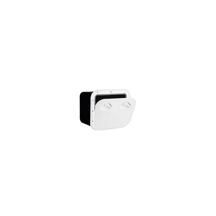 Sportello di stivaggio con scatola ASA resistente ai raggi UV. Colore bianco con o senza serratura. Dimensioni 380x380 mm.