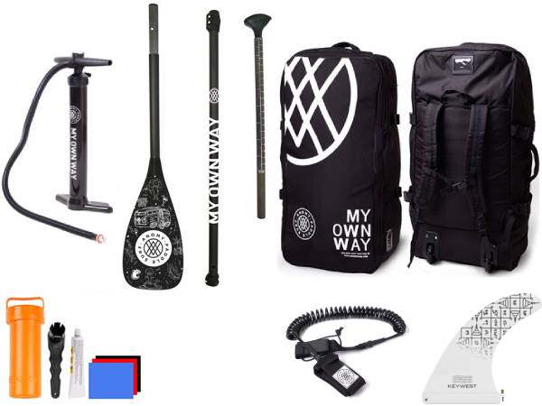“ L'pacchetto Anomy è un'pacchetto fornita con un'tavola, un'pinna, una pompa, un'borsa trasporto e una pagaia in carbonio in 3 parti, oltre a un'leash di sicurezza.
