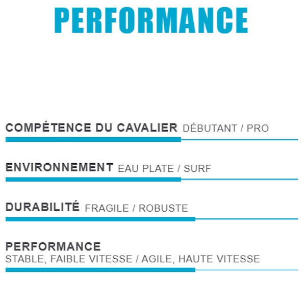 La lunghezza della tavola determina il tipo di pratica. In breve, più lunga è la tavola, migliore sarà la planata. Se la tavola è corta, non scivolerà altrettanto bene, ma tavola più facile da maneggiare. Più la tavola è larga, più è stabile; tuttavia, una tavola larga con un grande volume spingerà più acqua e sarà più lenta di un modello sottile, che sarà molto meno stabile. Lo spessore gioca un ruolo importante nella rigidità tavola: più la tavola è spessa, più è rigida e stabile.
