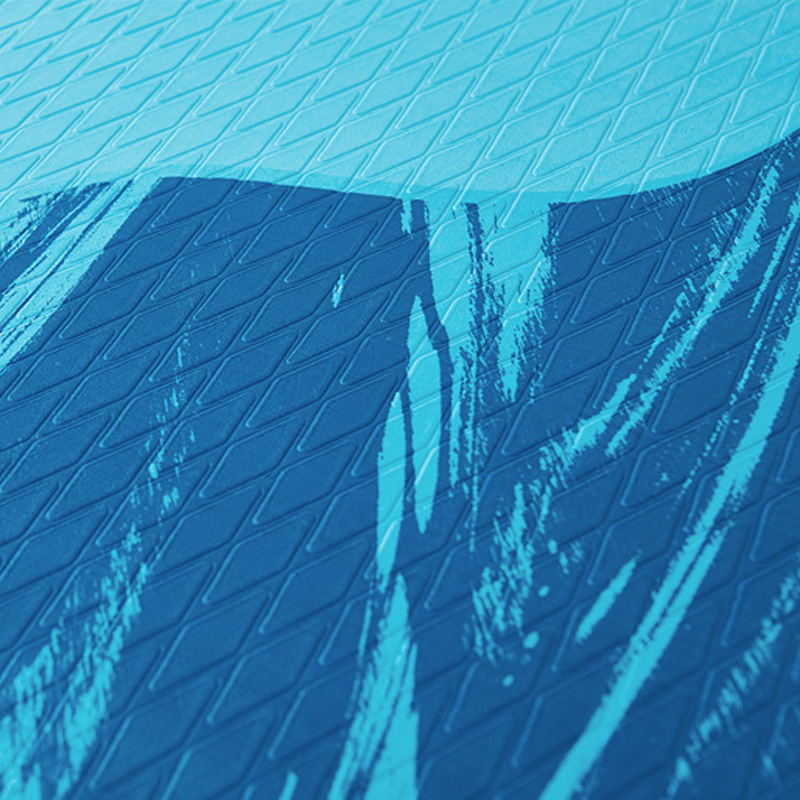 La gamma Wave presenta un morbido cuscinetto EVA con un motivo a raggi di diamante e una spessore grafica di 4 mm per un grip eccellente e un comfort ottimale. La grafica si estende su parte del cuscinetto per un impatto visivo ancora maggiore.