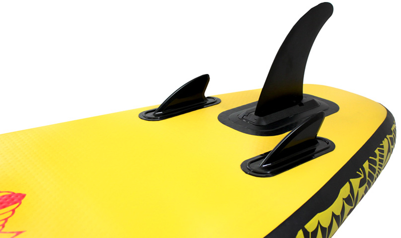 La Tavola Sup Gonfiabile Pride è dotata di 3 pinne: 2 fisse e una pinna centrale rimovibile. I lati di pinne sono modellati per essere molto resistenti. Se li pieghi, puoi raddrizzarli con acqua calda o con un asciugacapelli grazie alla loro memoria termica. La deriva centrale misura 10" ed è fissata in una scatola cerniera. È assicurata da una chiave.