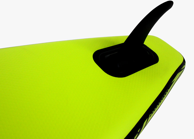 Il Tavola Sup Gonfiabile Pulsar è dotato di un pinna centrale rimovibile che misura 10" ed è fissato in una scatola cerniera. È fissato con una chiave.