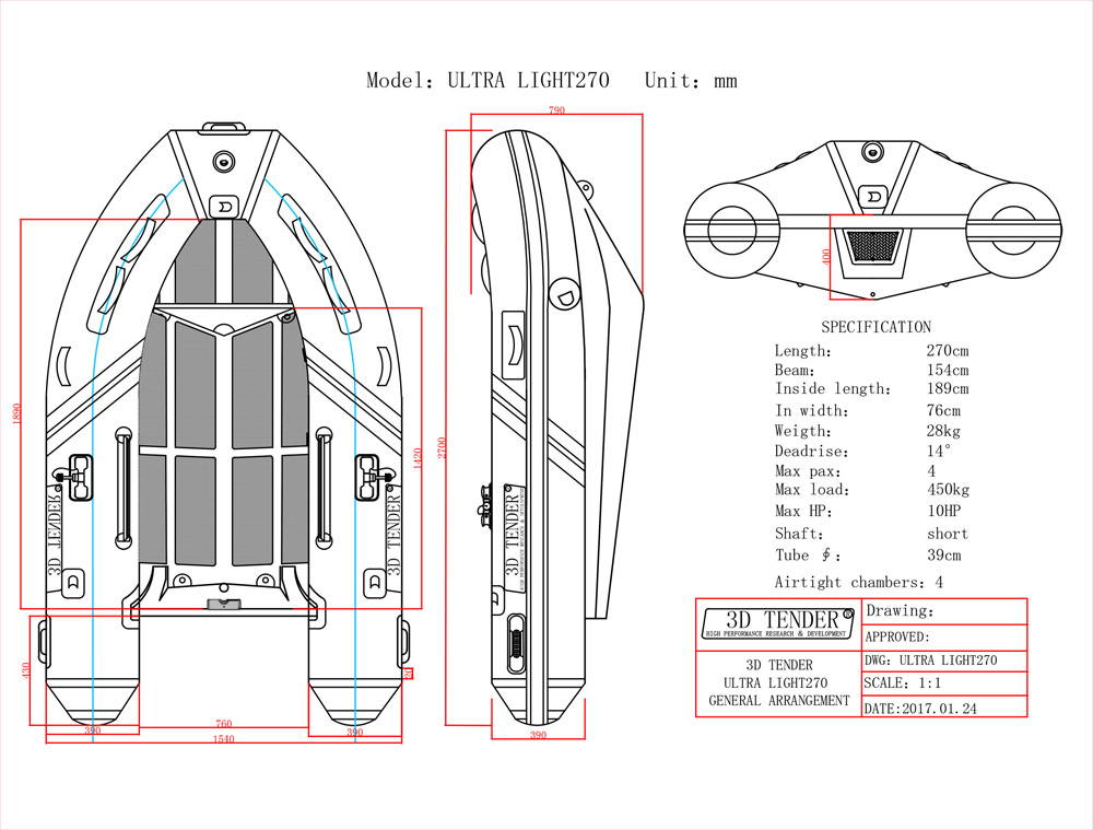 Tender Gommone 3D Tender Ultra Light Rib PVC 270 + copertura protettiva