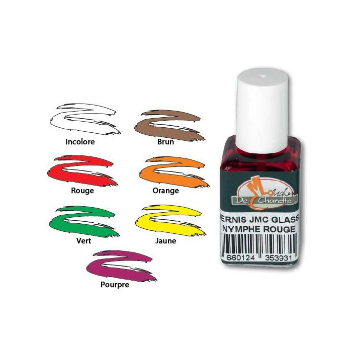 Prodotto in FranciaVernice colorato, lucido e trasparente. Copertura perfetta per piombo, rame, aculei, ecc. Può essere utilizzato insieme alla vernice per ninfe del vetro. Si asciuga in pochi minuti.