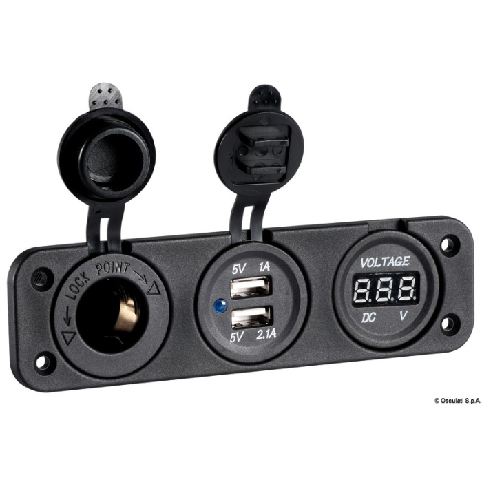 Voltmetro Osculati digitale 8/32 V - doppia presa USB - presa accendisigari