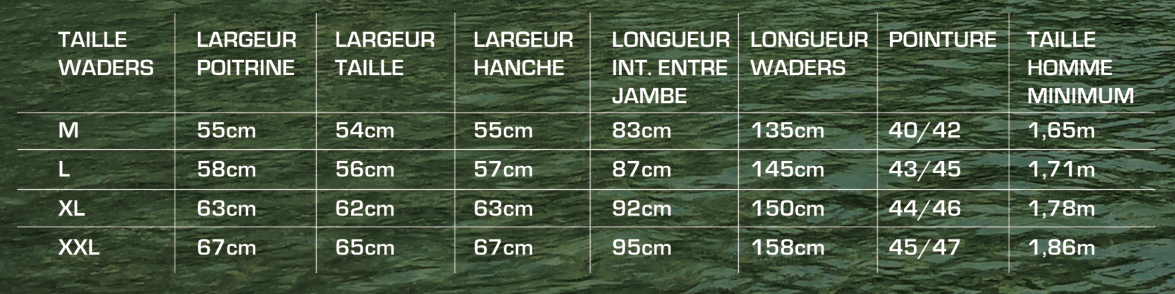 • waders o in posizione pantalone grazie al nostro sistema di bretelle regolate fino alle cosce per una buona vestibilità in posizione pantalone
